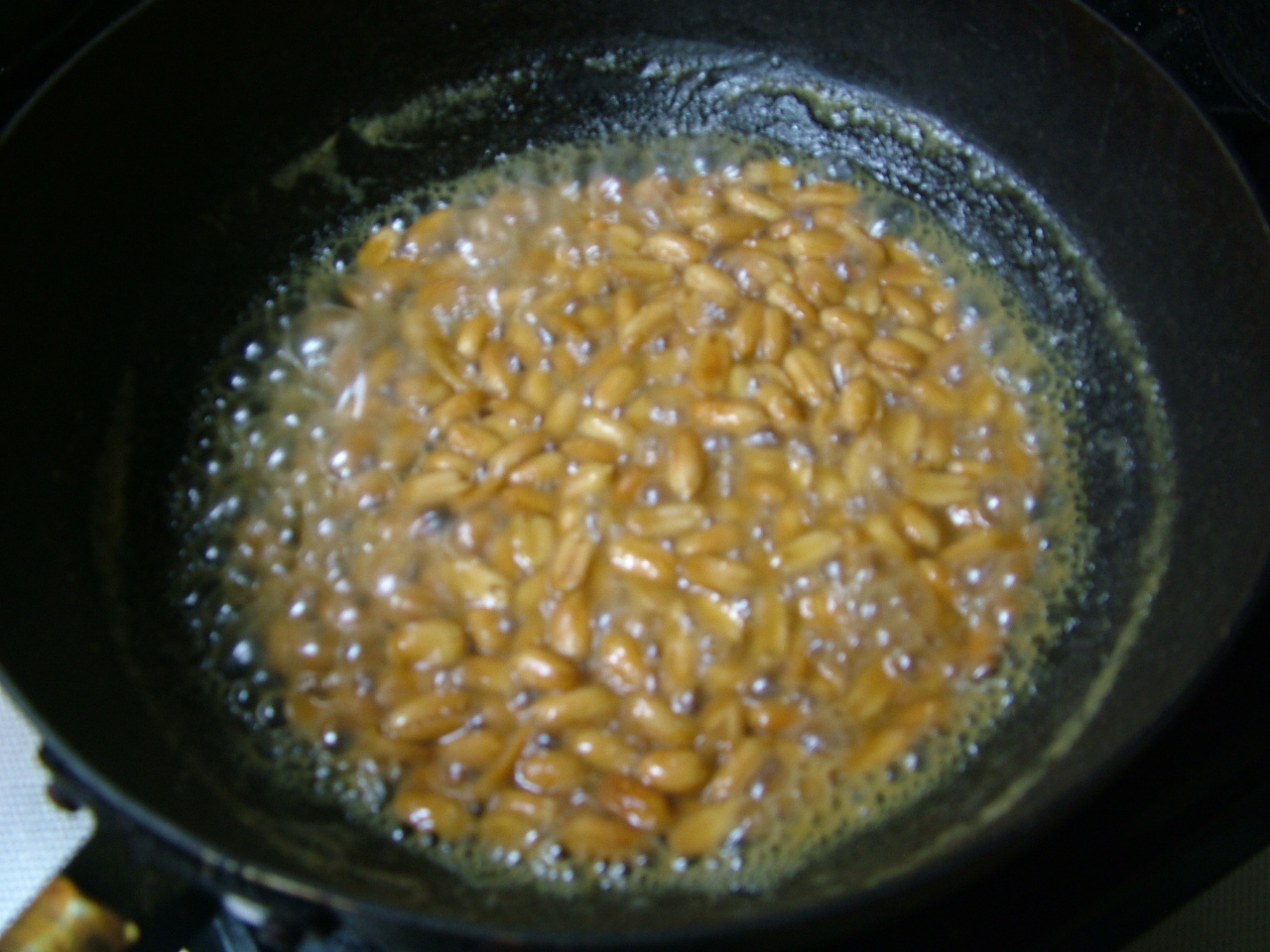 次にテフロンのフライパンを熱して、ピーナッツを乾煎りし