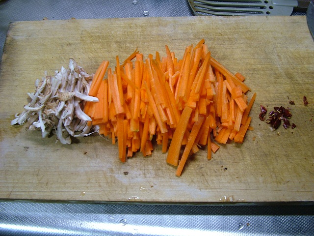 1. シシトウと長ネギをみじん切りにして、パスタソース大さじ2杯