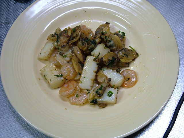 2、バターでにんにくを炒め、香りが立ち始めたら
